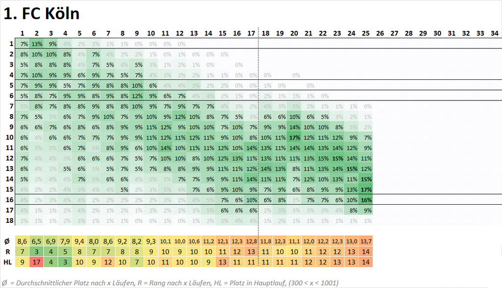 ⚠️ Entsprechend ist auch die Abstiegsgefahr real: In einem Viertel aller Fälle (25%) wird es am Ende nicht besser als Relegation.