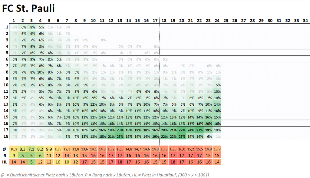 ↗️ #FCSP ist der Gewinner der letzten Wochen: Nach dem 20. Spieltag noch im Ø auf 16,0, jetzt bei 13,7.